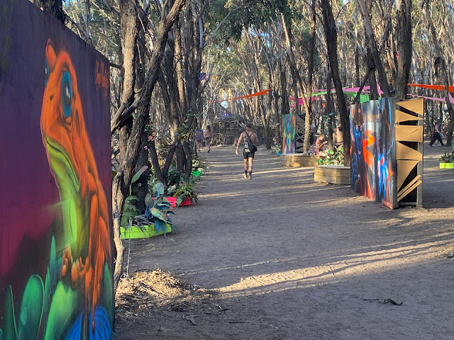 One of the things they did on the Monday which I thought was a really good touch, was that the amphitheatre had a whole afternoon of stand up comedy. This is a great time to have some stand up comedy playing, as everyone is chilling out and winding down, and we watched it for over an hour. They should definitely do this in future years. The music still went on until 9-10pm on the main stages so we got a fair bit of dancing in on this day too. It was a bit of an emotional moment seeing those main stages power down for the last time on the Monday night, seeing it all come to a close. Moby dicks was still coming up with the goods until midnight though so we went and danced up there. And as it was the last stage open until midnight it was the busiest we had seen it all weekend. Then at midnight there was something very unexpected; a fireworks display. Whilst this might be standard practice at the end of UK festivals, normally I would have thought that bushfire restrictions wouldn’t allow for such a thing. Especially after I made a huge mistake at Tanglewood. The whole festival I had just assumed that there would be a fireworks display for midnight on new years eve, and had been telling my kids so all weekend as they had never seen a large fireworks display before. They were extremely excited about this and my eldest had forced himself to stay up until 11pm and was so overtired he was lulling around the place, pushing through the tiredness and repeatedly asking how much longer it was going to be. When I eventually went up to the info tent to ask about the fireworks and where they would be, they told me that of course there wouldn’t be a fireworks display as the bushfire restrictions wouldn’t allow it. Breaking this news to my now extremely overtired 7 year old did not go down well and he spent a full 10 minutes rolling around on the ground screaming and losing his shit over the lack of fireworks that he had been staying up for. It took us a good 15 minutes to calm him down and he eventually just fell asleep on the dance floor in the middle of the festival after we told him he could come out later and see the laser displays if he woke up, and having carried him back to the camper to sleep, he somehow stirred himself at 2am bright eyed and ready to watch the lasers...definitely my son. So it came as a surprise to see a large fireworks display to end Esoteric, especially in an even hotter, drier area, but it was a nice ending point.