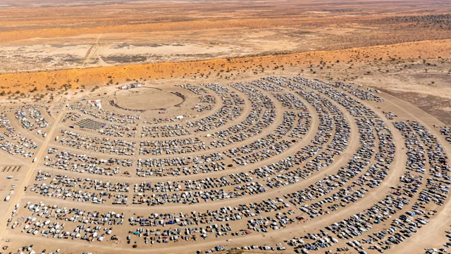 I'm just going to post a couple more photos from the big red bash here, the festival that was nearly stopped because of the rain. It's not entirely fair to it to say that it was nearly stopped because of a little bit of mud. Although I've often referred to Esoteric as being in the "outback" or on the edge of the desert, this isn't entirely accurate. In reality Esoteric is only a 5 or 10 minute drive outside of a small farming town. The big red bash however is out there. Like, really fucking out there. "The most remote festival on earth" is how they often market themselves, which I could quite believe. Its nearest town is Birdsville, which in itself is the remotest town in Australia. People plan 2 or 3 week trips just getting to the festival and back. Half the experience is just the journey there. Not my cup of tea music wise (its a rock/ pop/ country festival), but I respect the tenacity of putting something on all the way out there. These photos, taken from the air, show just how remote it is. If you get heavy rainfall and loads of people get stranded out there then it could become a real issue:
